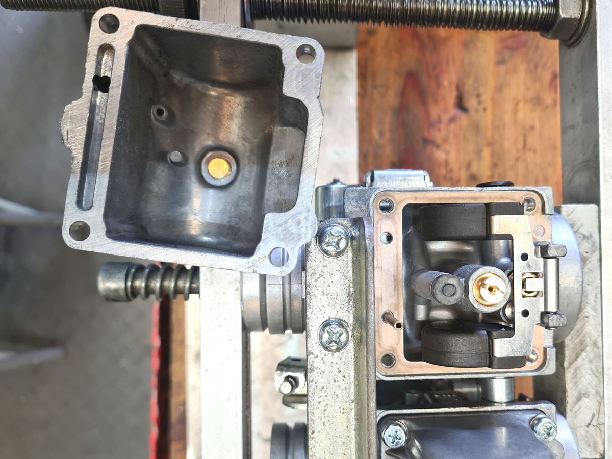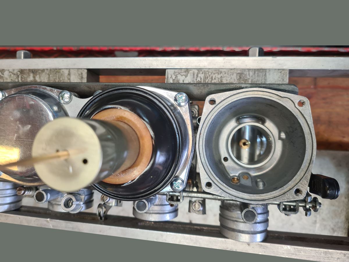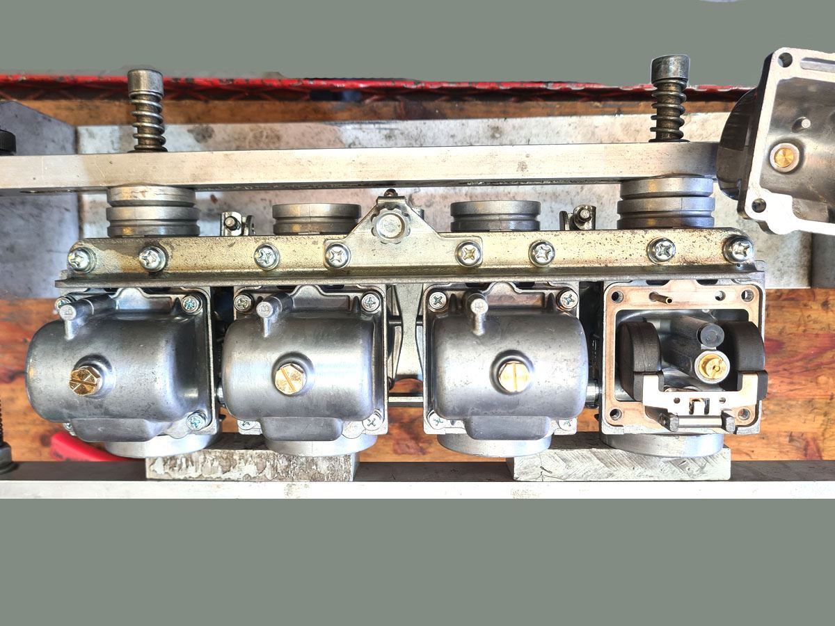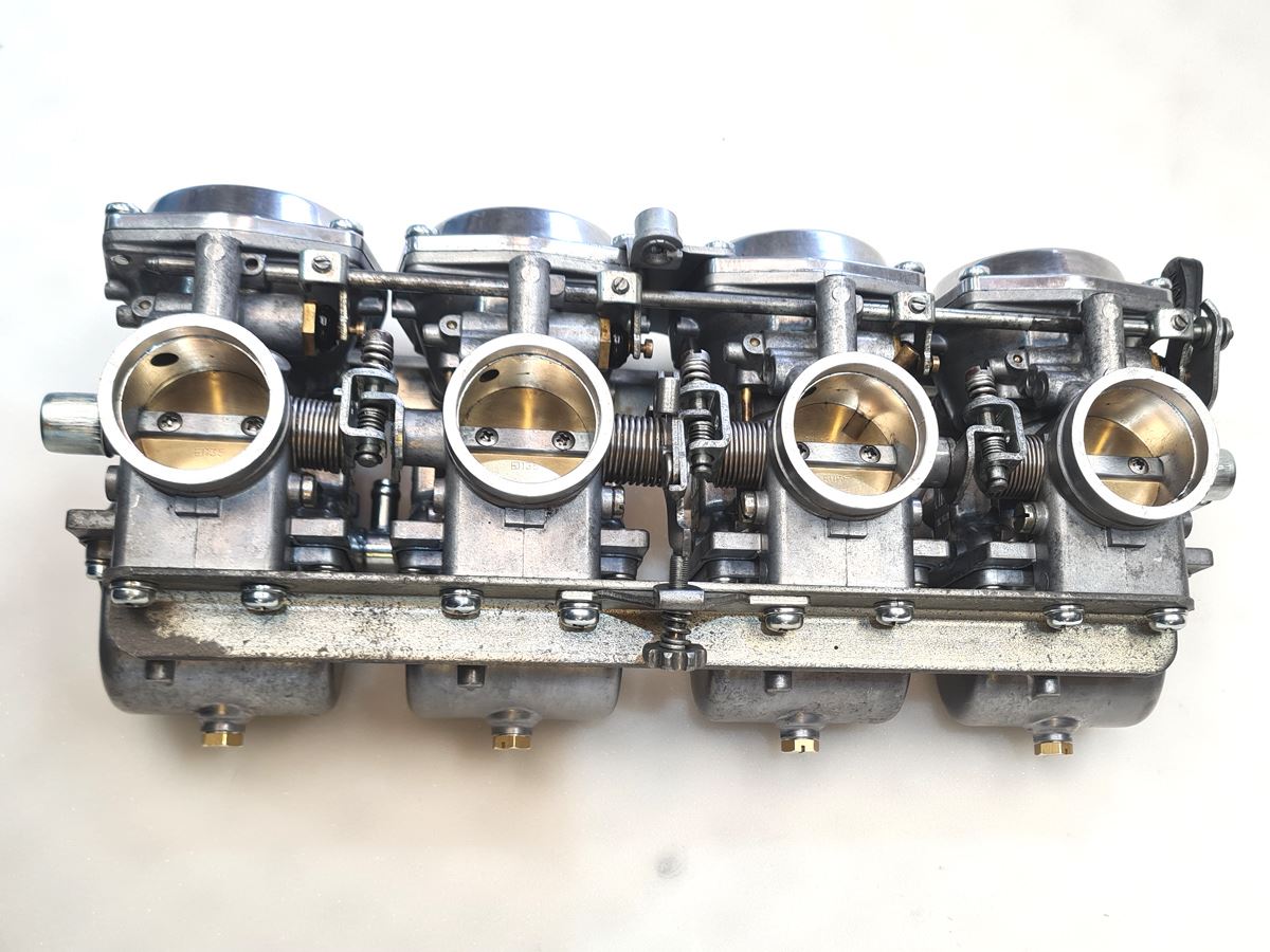 komplett revidiert - und wirklich KOMPLETT revidiert. Neben der gründlich durchgeführten Reinigung wurden alle Dichtungen (auch die der Drosselklappenwellen), Schwimmernadelventile, Düsen, Gummiteile, Schrauben, Kraftstoffverbinder etc. erneuert. Hauptaugenmerk war dabei natürlich die Technik. Trotzdem ist der Vergaser auch optisch in sehr gutem Zustand. Grundeinstellungen wie Leerlaufgemisch, Schwimmerniveau und Synchronisierung sind ebenfalls erledigt.